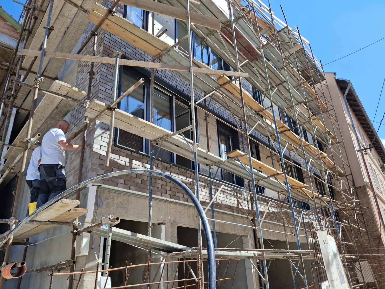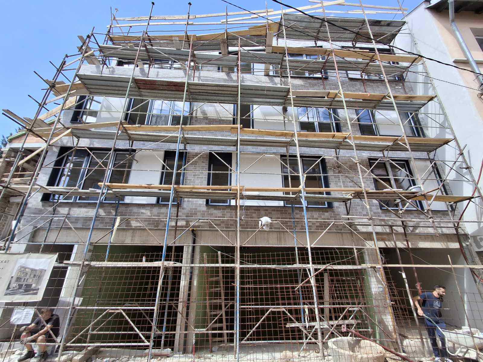 Završeno je malterisanje površina u stambenim jedinicama na dvije etaže objekta, u finalnoj fazi je izvođenje radova na trećem spratu. Finaliziran je razvod grijanja na prvoj